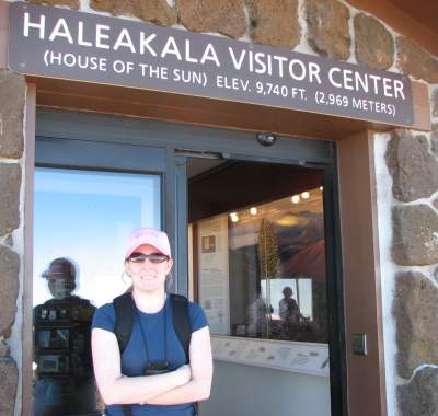 Mrs splorp! at the visitor center at Haleakala. Haleakala is a massive shield volcano that forms more than 75% of the Hawaiian Island of Maui. You may notice she looks cold. You may also notice that just above her head is a sign reading 9,740 feet. It was, if I remember correctly, about 25-30 degrees colder at the peak than it was at sea level. September 14, 2006